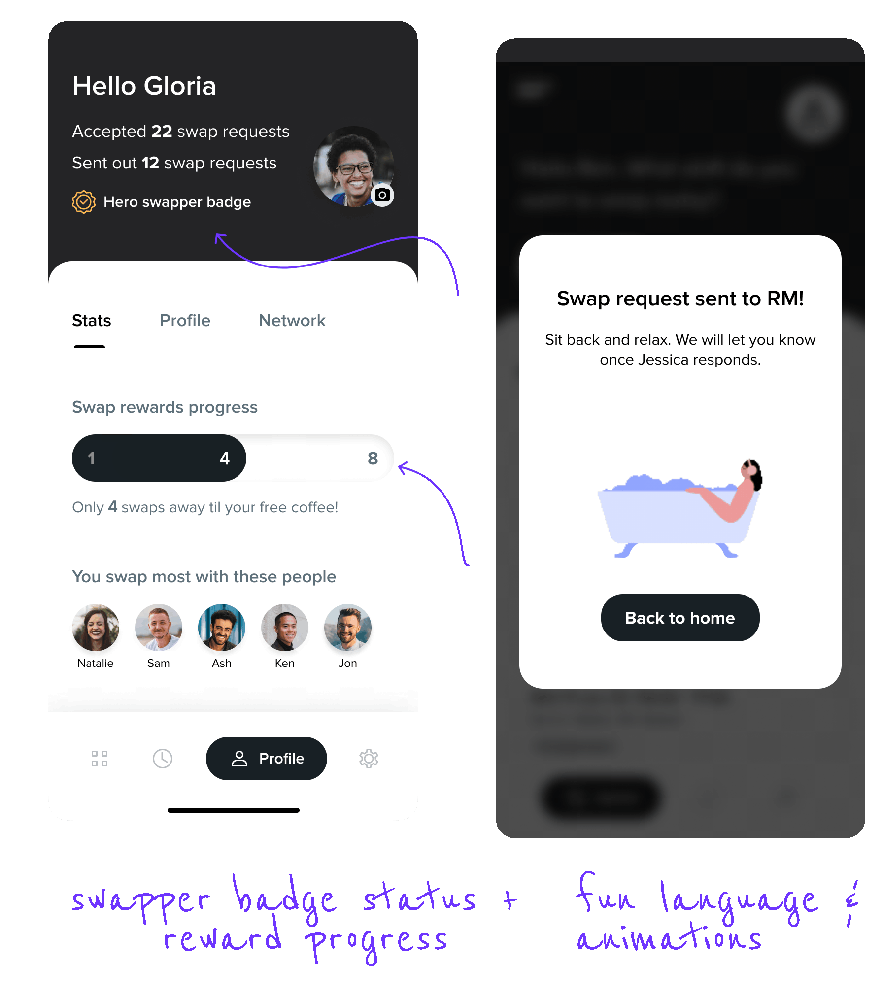 An app that lets you view your rota, add people to your network, view their rota and finally send out swap request with an automated message to your rota manager.