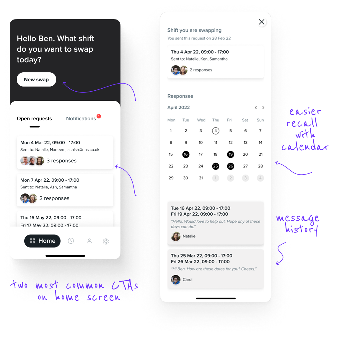 Jr. doctors need to organize shift swap themselves by checking everyone's rota, sending out group messages and private messages, arranging a date they can swap to and then it needs to be approved by the rota manager. It can be an extremely tedious task.